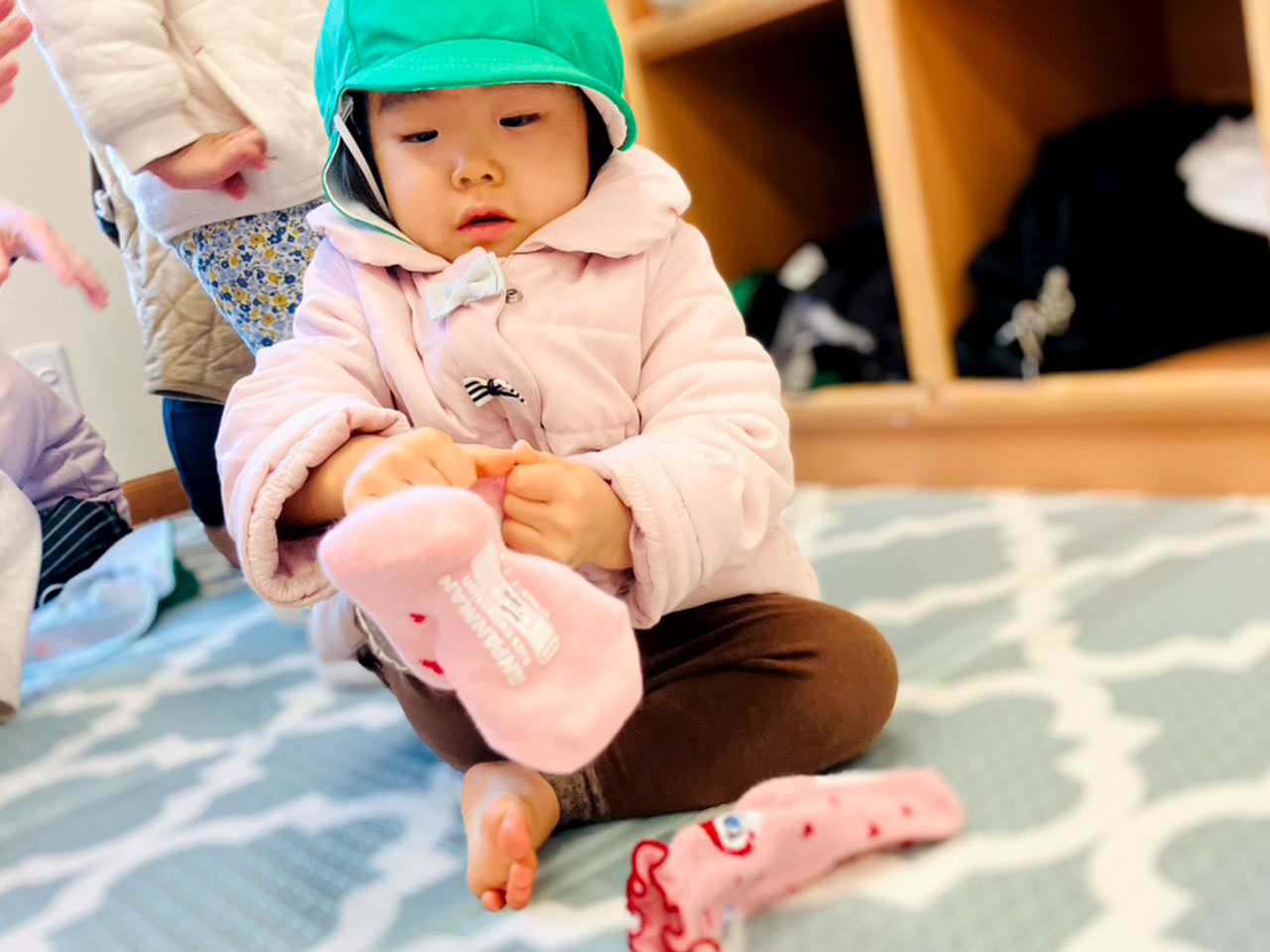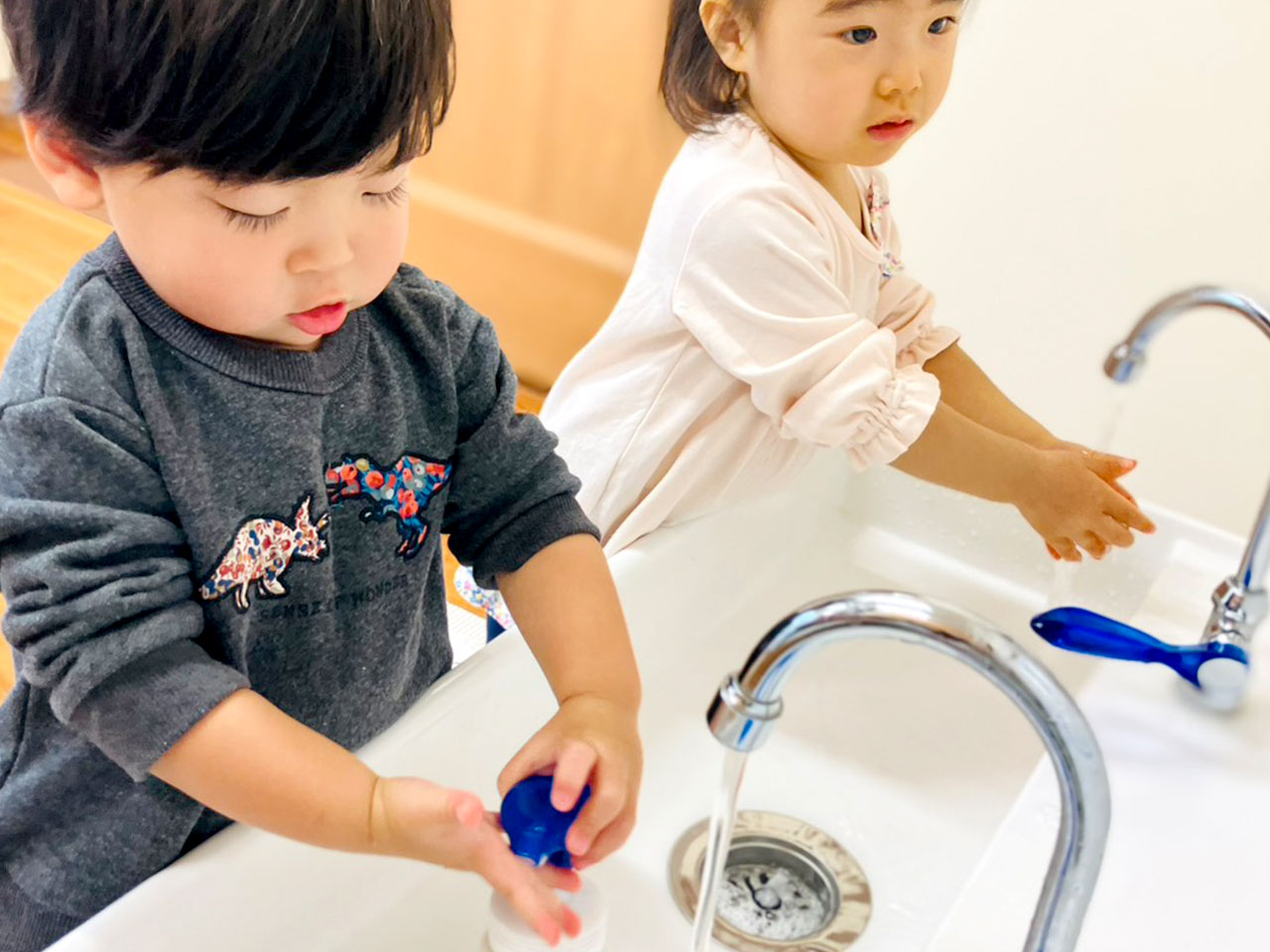 - あいさつ・手洗い・玩具の後片づけ・お着替え・衣服のたたみ方・箸の使い方・トイレトレーニング・靴並べ・椅子の出し入れなど。